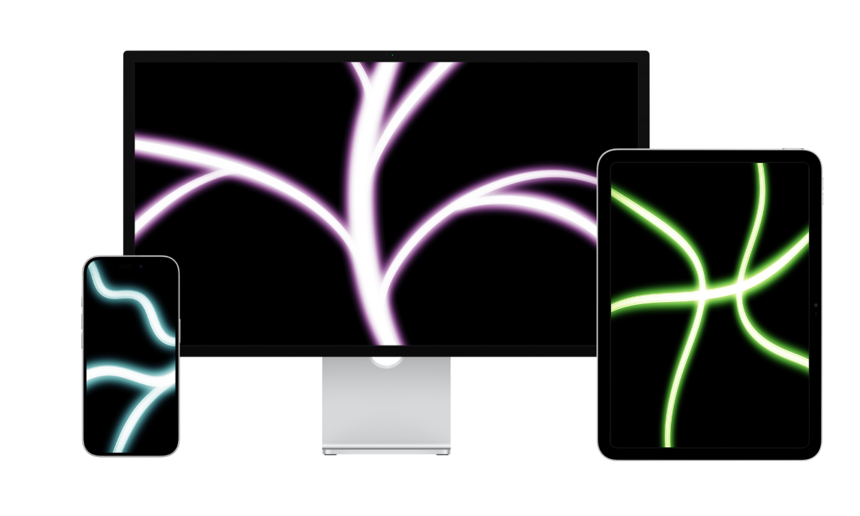 Un pack de fond d'écran dessiné a l'iPad pour téléphone, tablette et PC, en 4 couleurs et qui se marie bien avec le Liquid Glass.